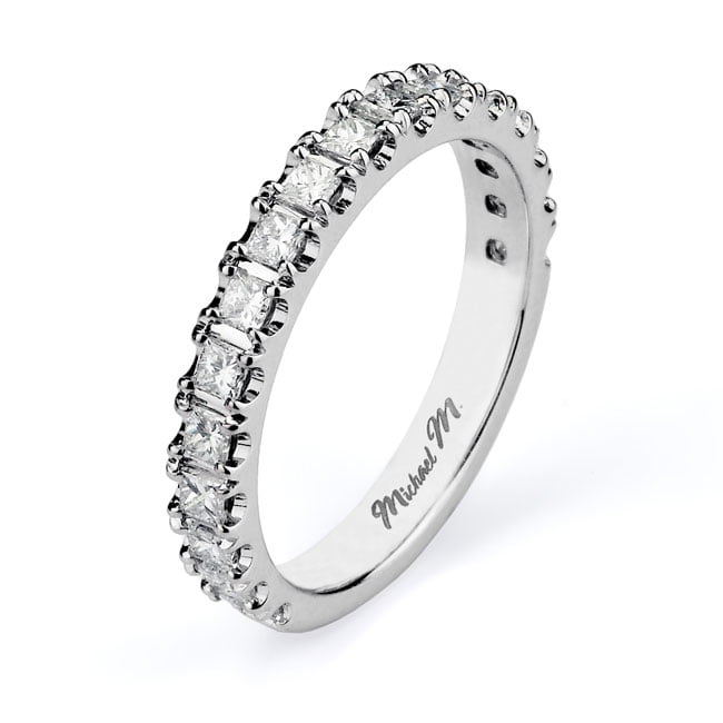 18 KARAT WHITE GOLD DIAMOND WEDDING BAND (18) PRONG SET PRINCESS CUT DIAMONDS WEIGHING 0.86 CARATS