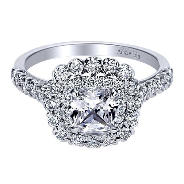 18k White Gold Amavida Cushion Cut Double Halo Diamond Engagement Ring