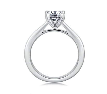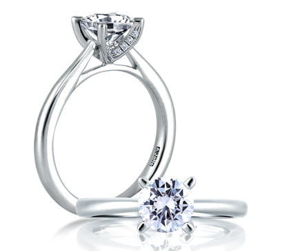 From the Seasons of Love Collection this beautiful ring has an element of surprise with round Pave set damonds on the head enhancing the round brilliant center stone.