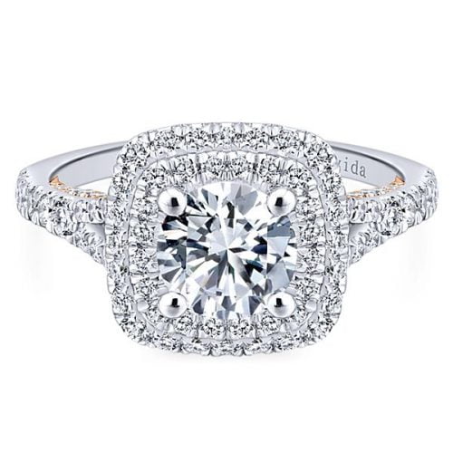 18k White/Rose Gold Round Double Halo Diamond Engagement Ring