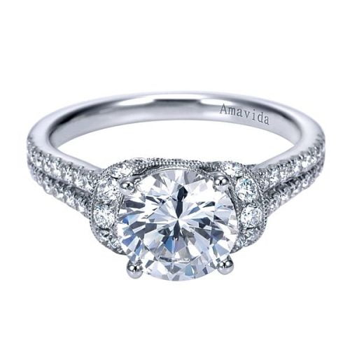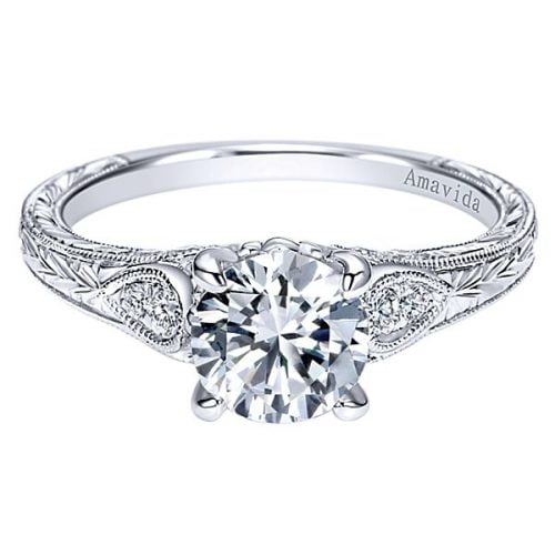Vintage Platinum Round Straight Diamond Engagement Ring