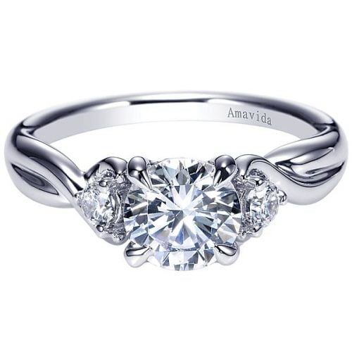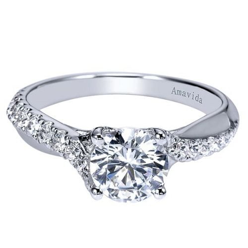 18k White Gold Round Twisted Diamond Engagement Ring
