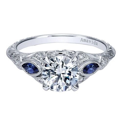 Vintage Platinum Round Straight Diamond A Quality Sapphire Engagement Ring