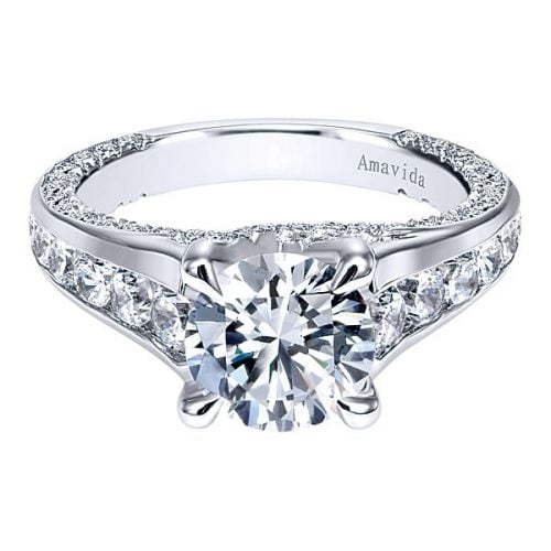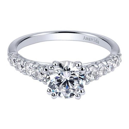 18k White Gold Round Straight Diamond Engagement Ring