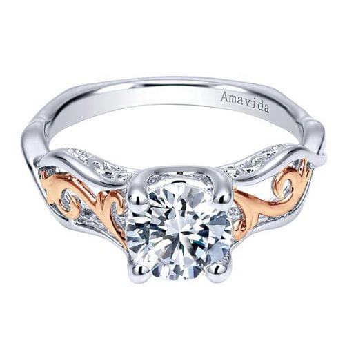 18k White/Rose Gold Round Twisted Engagement Ring