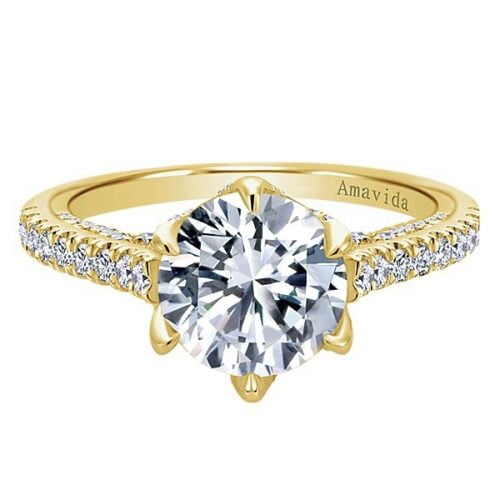 18k Yellow Gold Round Straight Diamond Engagement Ring