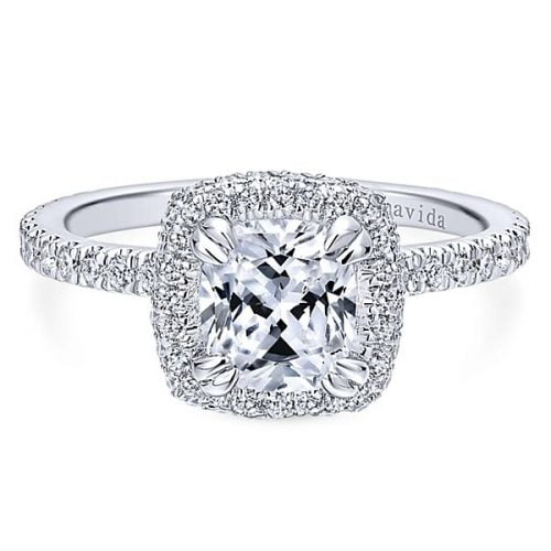 18k White Gold Cushion Cut Double Halo Diamond Engagement Ring