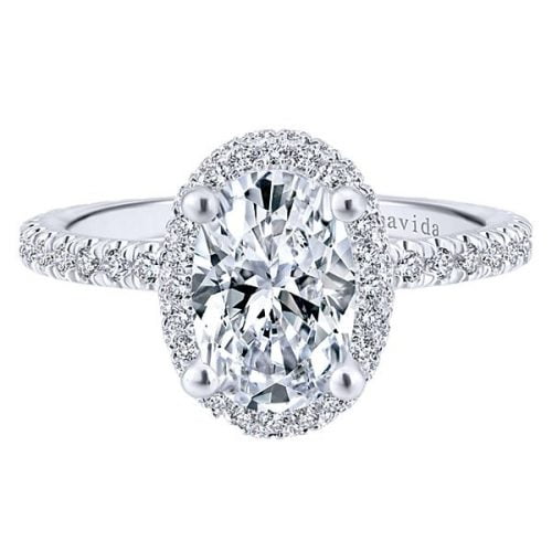 18k White Gold Oval Double Halo Diamond Engagement Ring