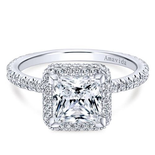 18k White Gold Princess Cut Double Halo Diamond Engagement Ring