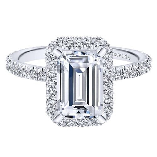 18k White Gold Emerald Cut Double Halo Diamond Engagement Ring