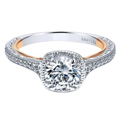 18k White/Rose Gold Round Straight Diamond Engagement Ring