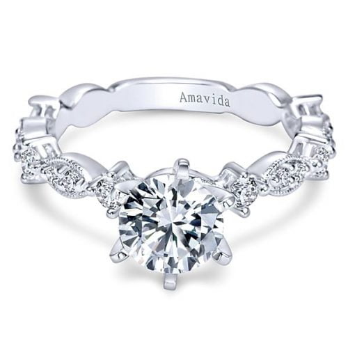 18k White Gold Round Straight Diamond Engagement Ring