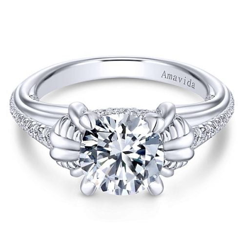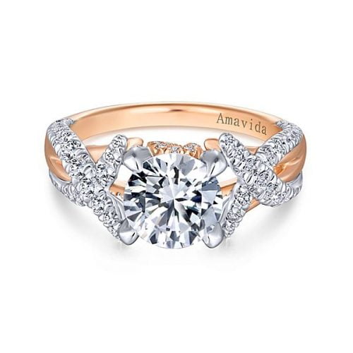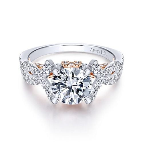 18k White/Rose Gold Round Twisted Diamond Engagement Ring