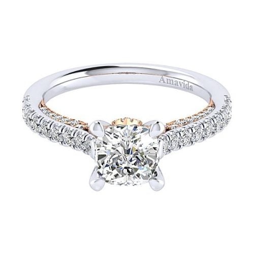 18k White/Rose Gold Cushion Cut Straight Diamond Engagement Ring