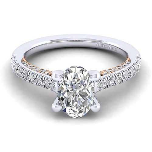 18k White/Rose Gold Oval Straight Diamond Engagement Ring