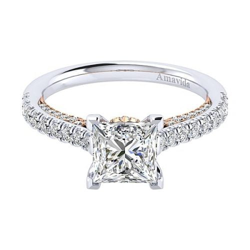 18k White/Rose Gold Princess Cut Straight Diamond Engagement Ring