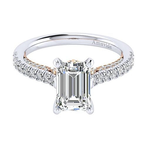 18k White/Rose Gold Emerald Cut Straight Diamond Engagement Ring