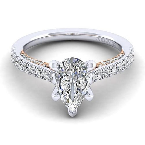 18k White/Rose Gold Pear Shape Straight Diamond Engagement Ring