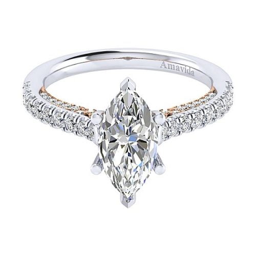 18k White/Rose Gold Marquise Straight Diamond Engagement Ring
