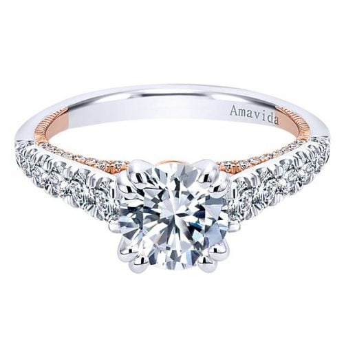 18k White/Rose Gold Round Straight Diamond Engagement Ring