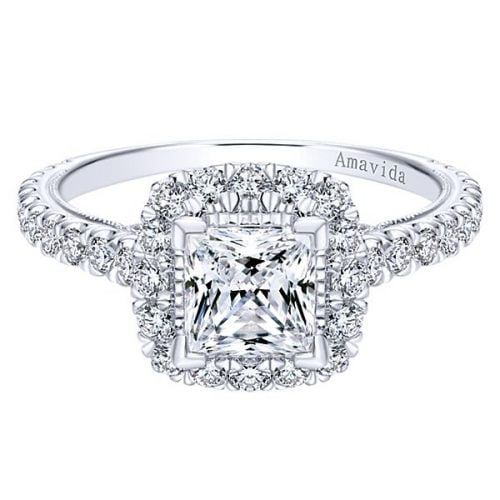 18k White Gold Amavida Princess Cut Halo Diamond Engagement Ring