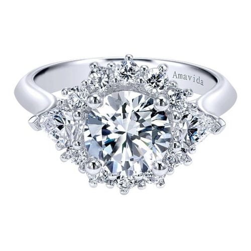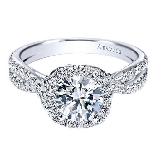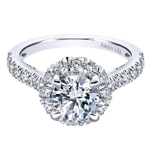 18k White Gold Amavida Round Halo Diamond Engagement Ring