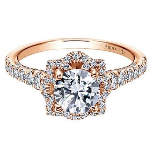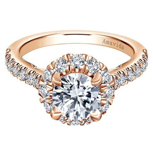 18k Rose Gold Amavida Round Halo Diamond Engagement Ring