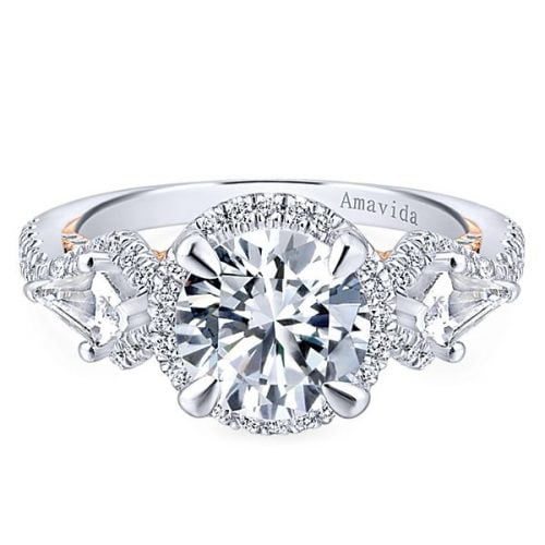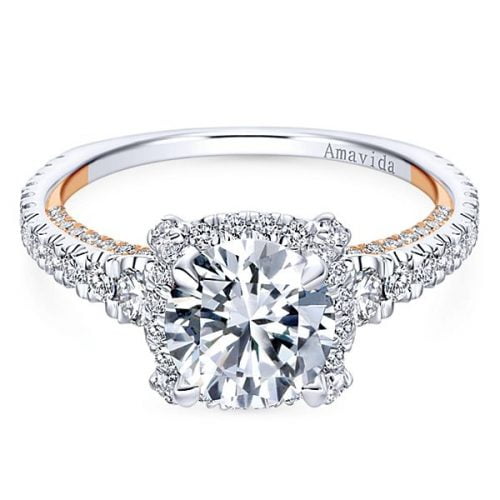 18k White/Rose Gold Round Halo Diamond Engagement Ring