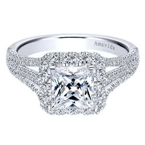 18k White Gold Amavida Princess Cut Halo Diamond Engagement Ring