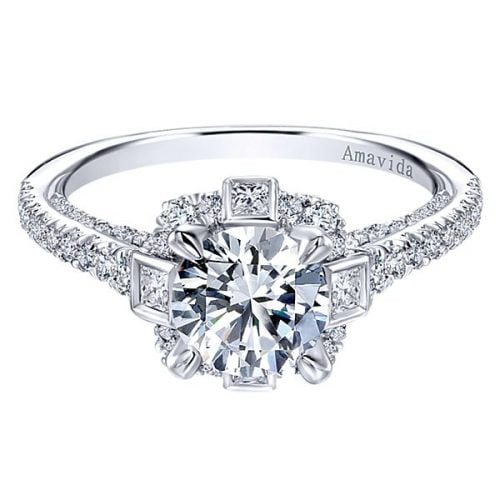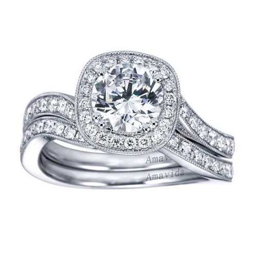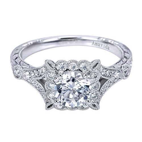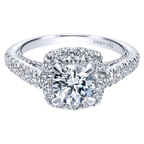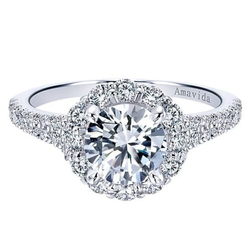 18k White Gold Amavida Round Halo Diamond Engagement Ring