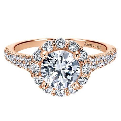 18k Rose Gold Amavida Round Halo Diamond Engagement Ring