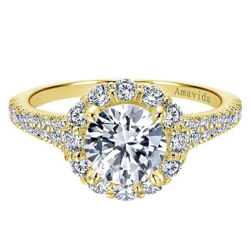18k Yellow Gold Amavida Round Halo Diamond Engagement Ring