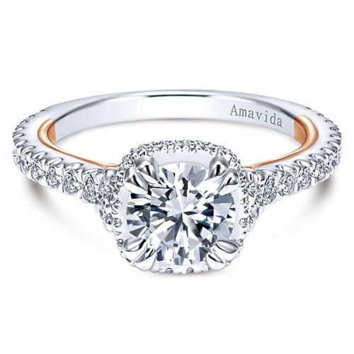 18k White/Rose Gold Round Halo Diamond Engagement Ring