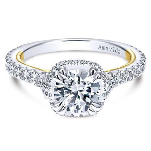 18k Yellow Gold Amavida Round Halo Diamond Engagement Ring