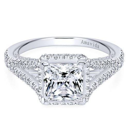 18k White Gold Princess Cut Halo Diamond Engagement Ring