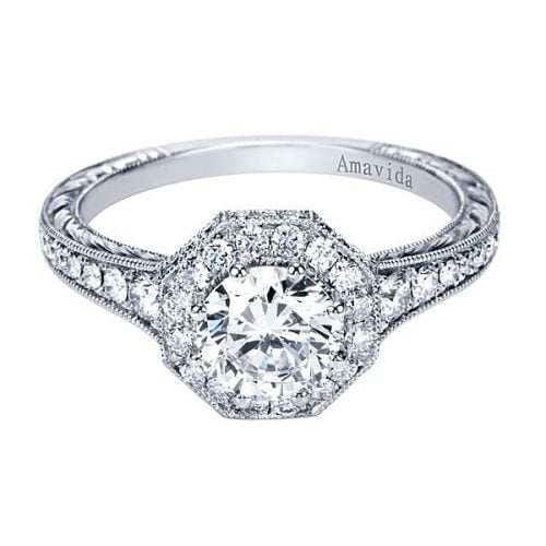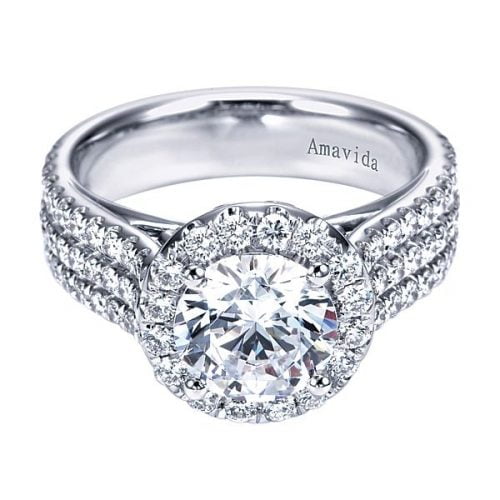 18k White Gold Amavida Round Halo Diamond Engagement Ring