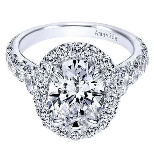 18k White Gold Oval Halo Diamond Engagement Ring