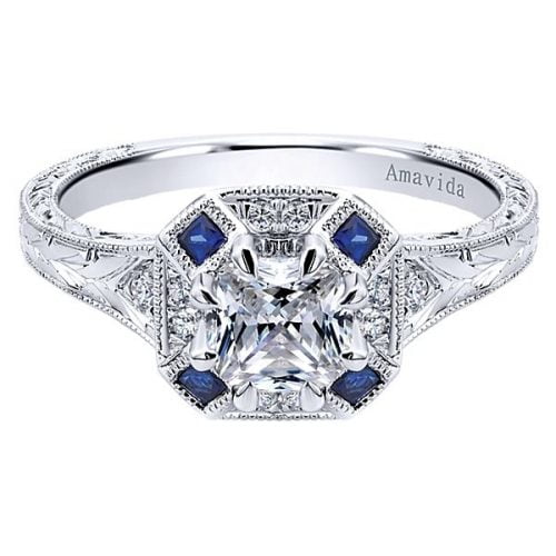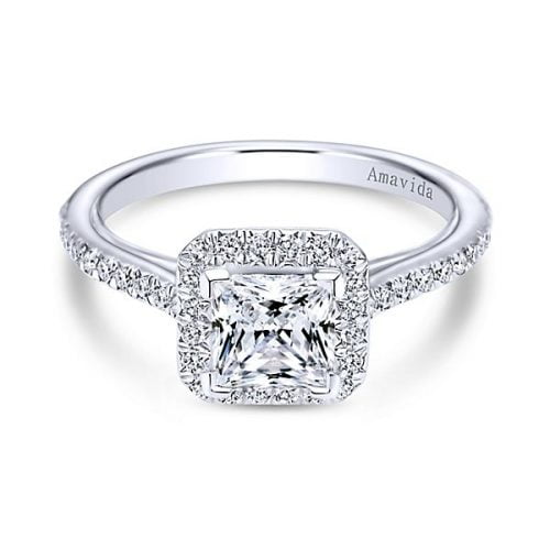18k White Gold Amavida Princess Cut Halo Diamond Engagement Ring