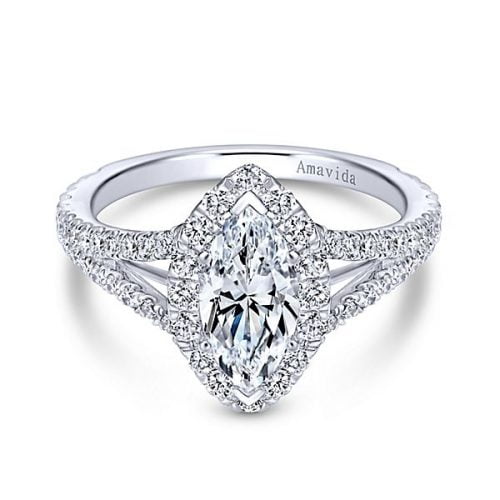 18k White Gold Marquise Halo Diamond Engagement Ring