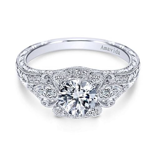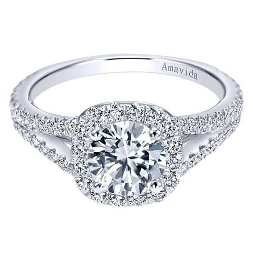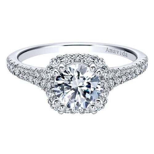 18k White Gold Amavida Round Halo Diamond Engagement Ring