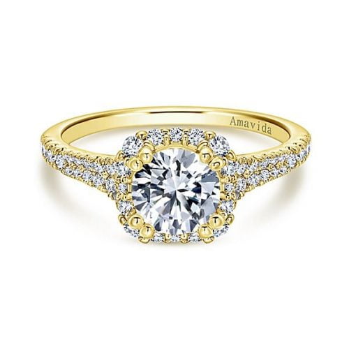 18k Yellow Gold Round Halo Diamond Engagement Ring
