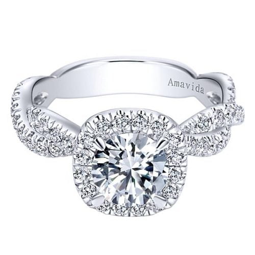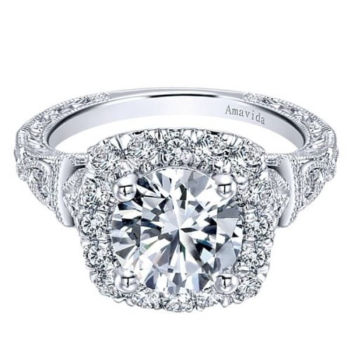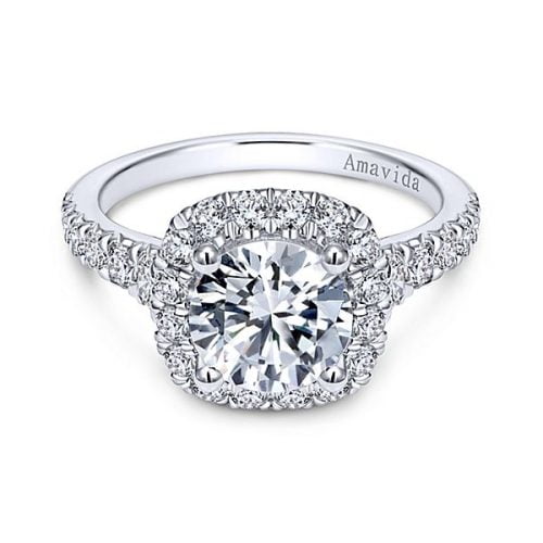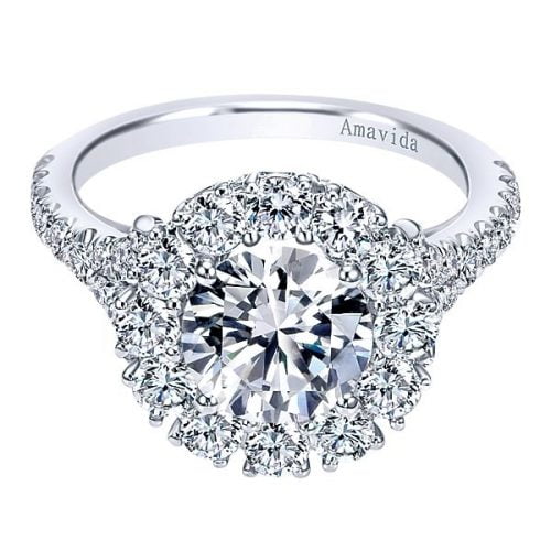 18k White Gold Round Amavida Halo Diamond Engagement Ring