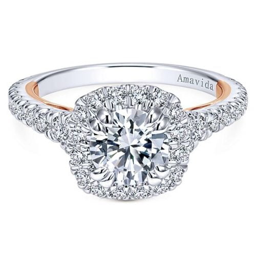 18k White/Rose Gold Amavida Round Halo Diamond Engagement Ring