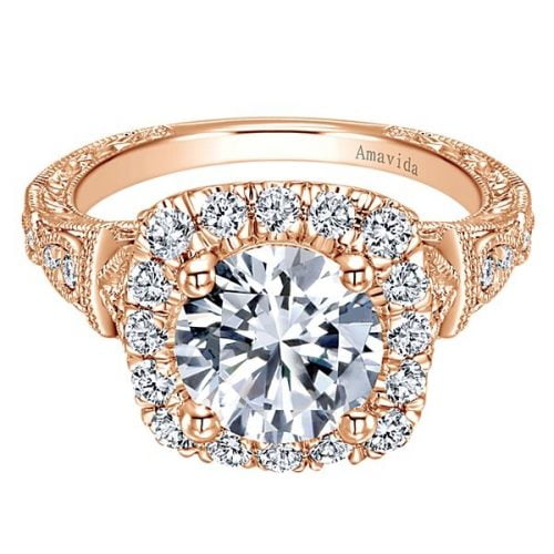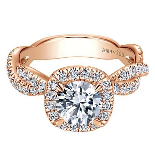 18k Rose Gold Amavida Round Halo Diamond Engagement Ring