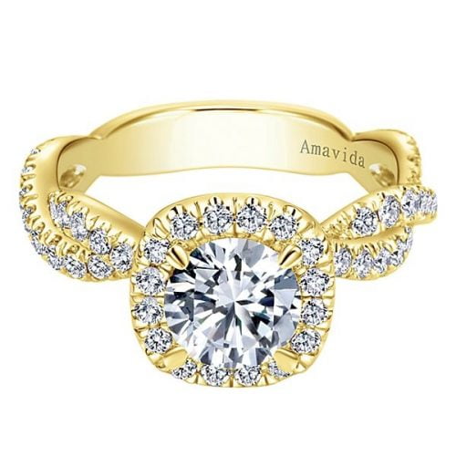 18k Yellow Gold Amavida Round Halo Diamond Engagement Ring