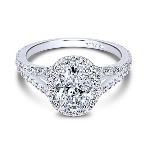 18k White Gold Amavida Oval Halo Diamond Engagement Ring