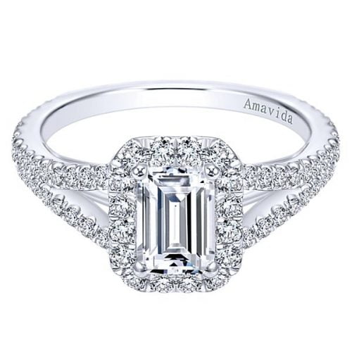 18k White Gold Amavida Emerald Cut Halo Diamond Engagement Ring