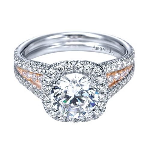18k White/Rose Gold Amavida Round Halo Diamond Engagement Ring