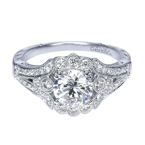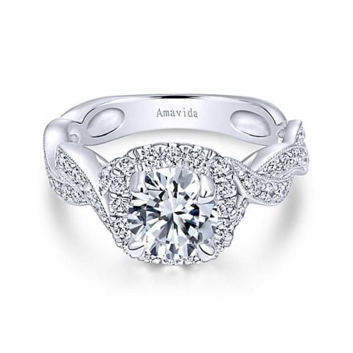 18k White Gold Round Amavida Halo Diamond Engagement Ring