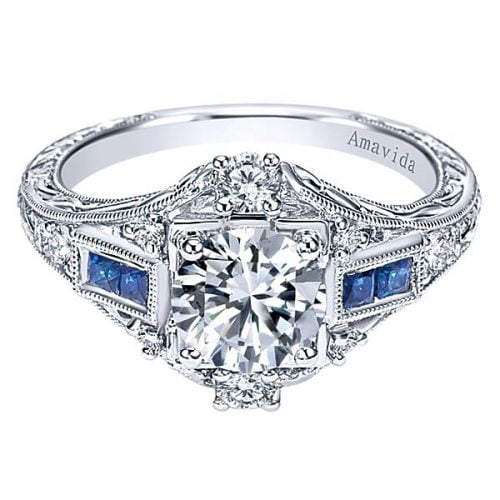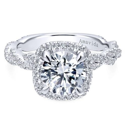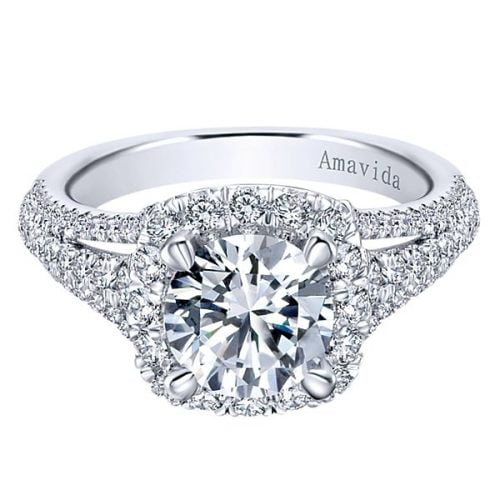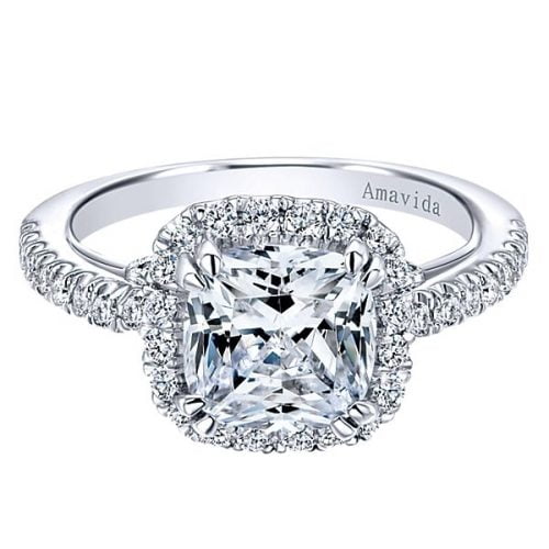 18k White Gold Amavida Cushion Cut Halo Diamond Engagement Ring